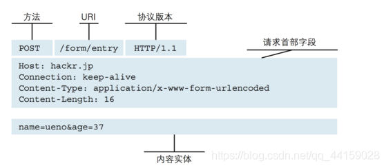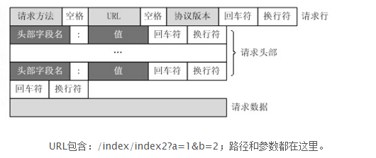 通过TCP套接字,客户端向Web服务器发送一个文本的请求报文,一个请求报文由请求行、请求头部、空行和请求数据4部分组成。