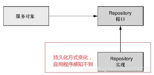 (2)为了避免应用与特定的数据访问策略耦合在一起,编写良好的Repository应该以接口的方式暴露功能。下图展现了设计数据访问层的合理方式。使用接口可以使持久化方式的选择独立于Repository,切换持久化框架对应用程序带来的影响很小。