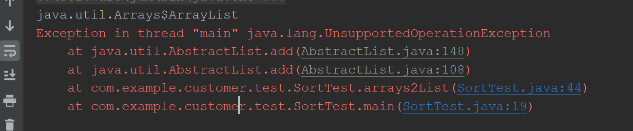 在对Arrays.asList转换后的list进行操作的时候,只可以进行如下的操作。因为这里返回的list并不是java.util.ArrayList,而是Arrays中的静态内部类,java.util.Arrays$ArrayList。