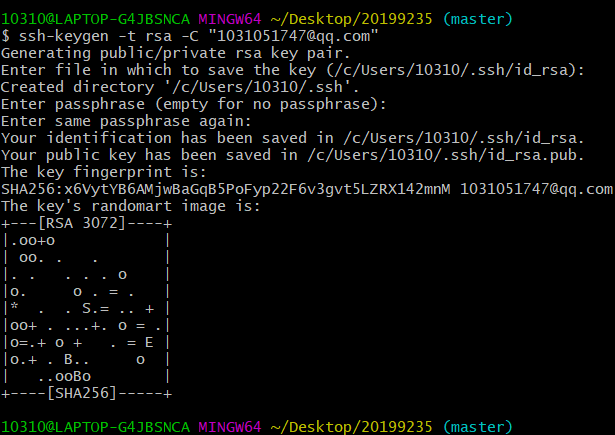 获取ssh密钥:ssh-keygen -t rsa -C ""