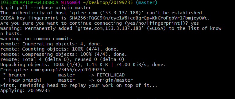 本地仓库推送至远程仓库:git pull --rebase origin master