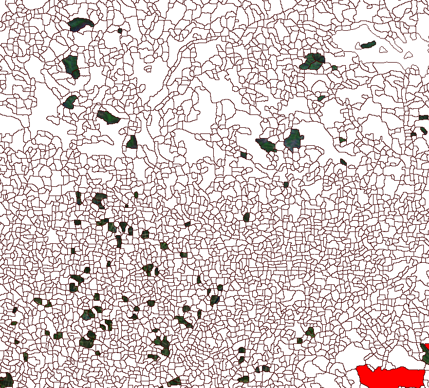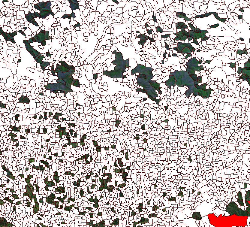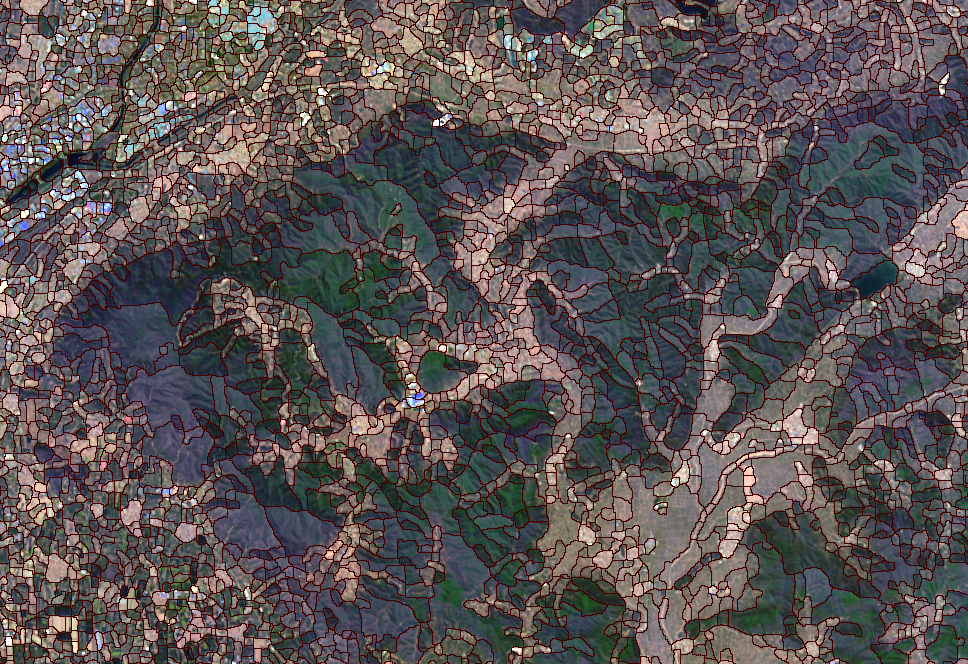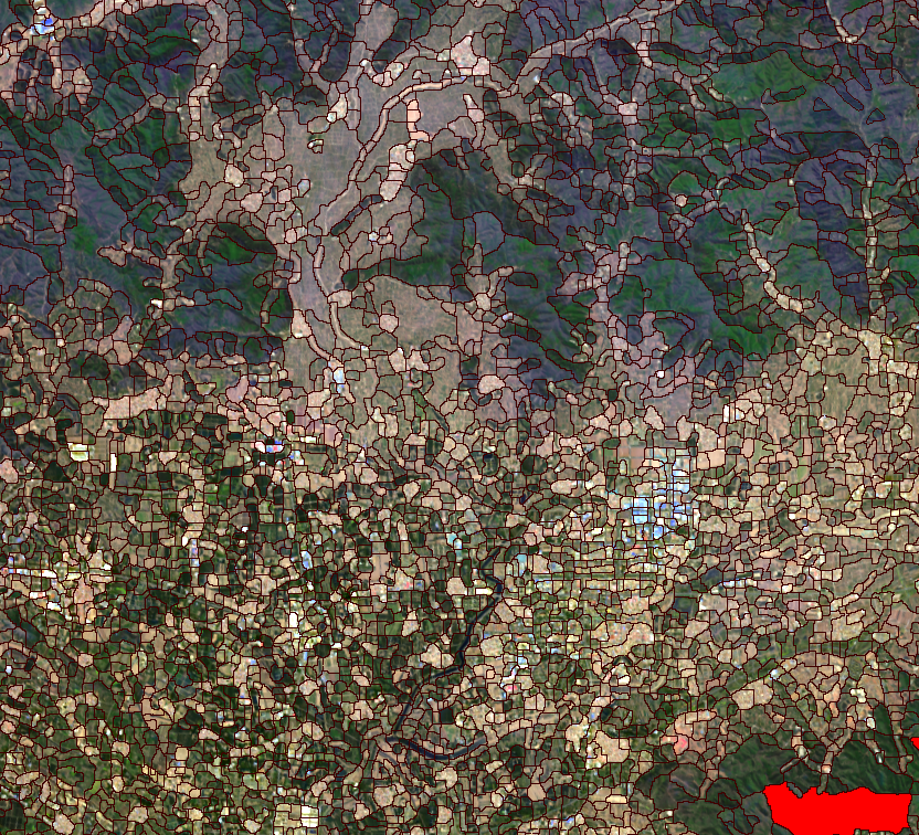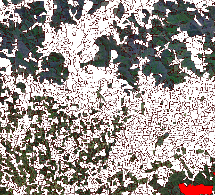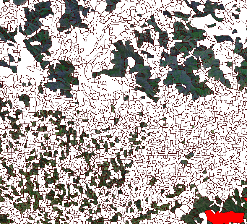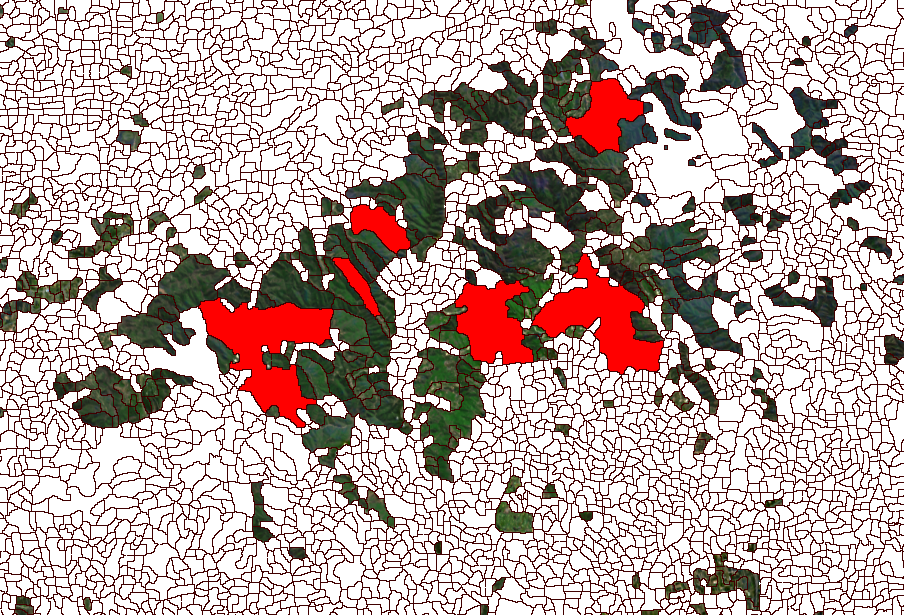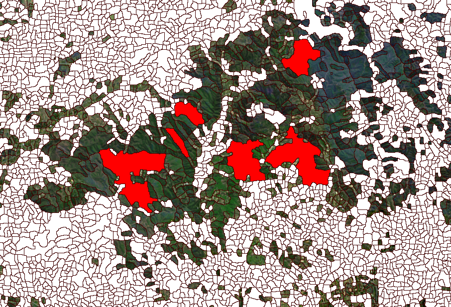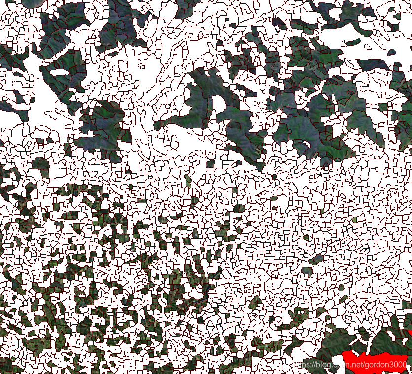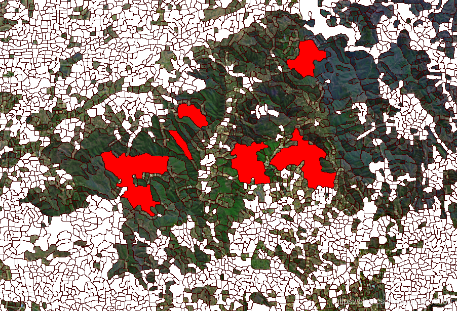 (在上一篇中已经介绍了如何采集样本数据),这里采集了一些山林的样本(红色的块)。
