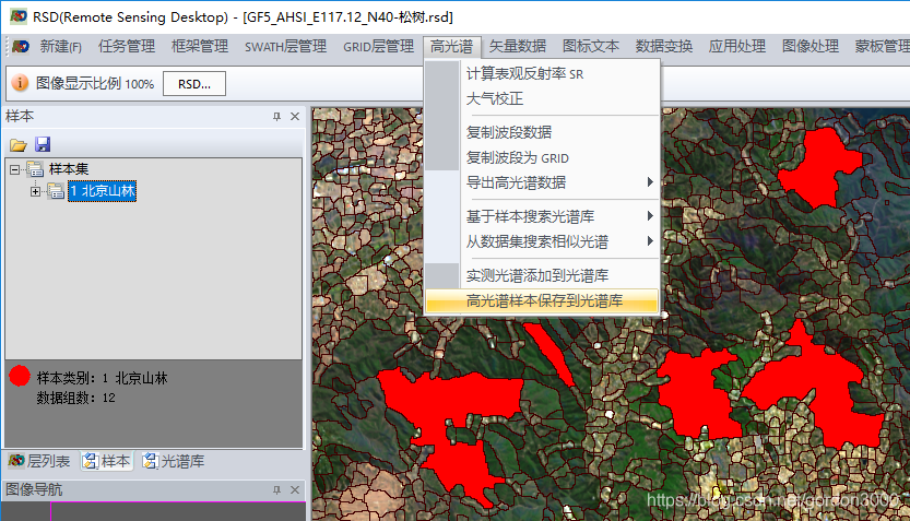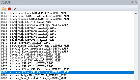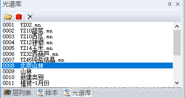打开保存到光谱库(图13)样本,并在层列表勾选高光谱数据集。