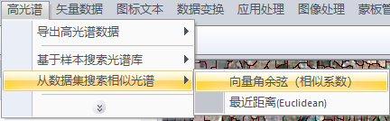 现在我们会自然想到用自己建立的光谱库对高光谱数据集进行搜索了。我们在上述数据集中采集一些样本,用该样本建立一个光谱数据,然后再用该光谱数据对高光谱数据集进行搜索,看看会发生什么。