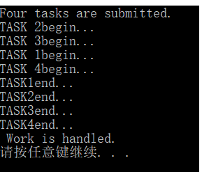 //提交四个任务用一个相同的工作项