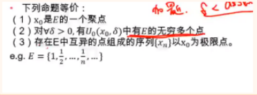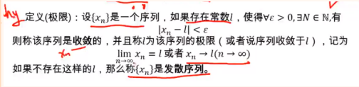 序列的极限 序列 实际上是从N到R的一个函数 序列极限:  几何意义  放缩 性质: 唯一性:极限唯一 有界性:收敛序列是有界的 保序性:两个序列ab,其函数an>bn,那么极限a>=b 子序列收敛:子序列和序列极限相同 单调有界函数必有极限 夹逼定理  重要极限 伯努利不等式  重要极限一  重要极限二  无穷小 定义  性质  无穷大 定义  性质  阶层比较  闭区间套定理 定义  聚点原理 定义  性质  R中任何一个有界的无穷子集至少有一个聚点 任何有界序列必然存在收敛子列 来源:CSDN作者:加油学python链接:https://blog.csdn.net/qq_42007339/article/details/104172564 标签 数学 高数