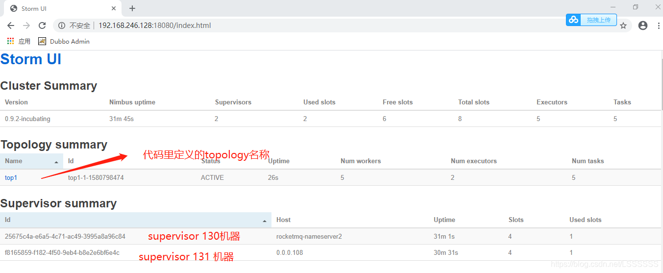 然后访问storm UI 可以看到任务