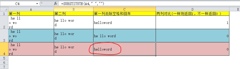 仅使用SUBSTITUTE函数也可以实现单个单元格去除空格和回车