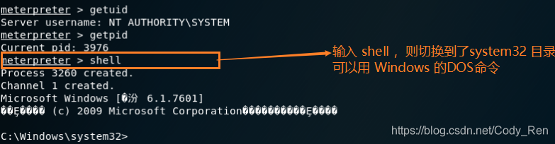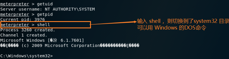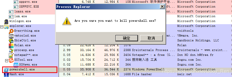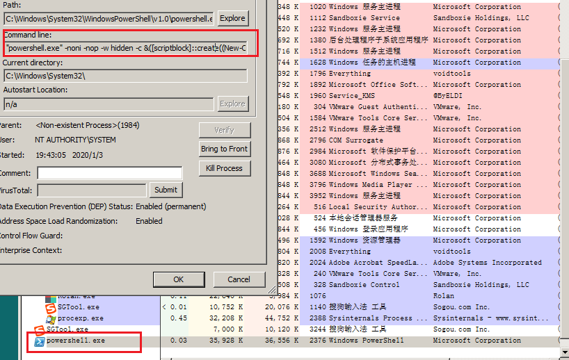 攻击机重新执行一下 exploit ,连接成功后发现靶机又出现 powershell.exe
