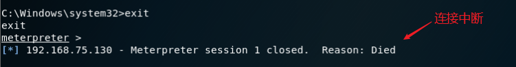 在靶机中结束 powershell.exe 进程,攻击机显示连接中断