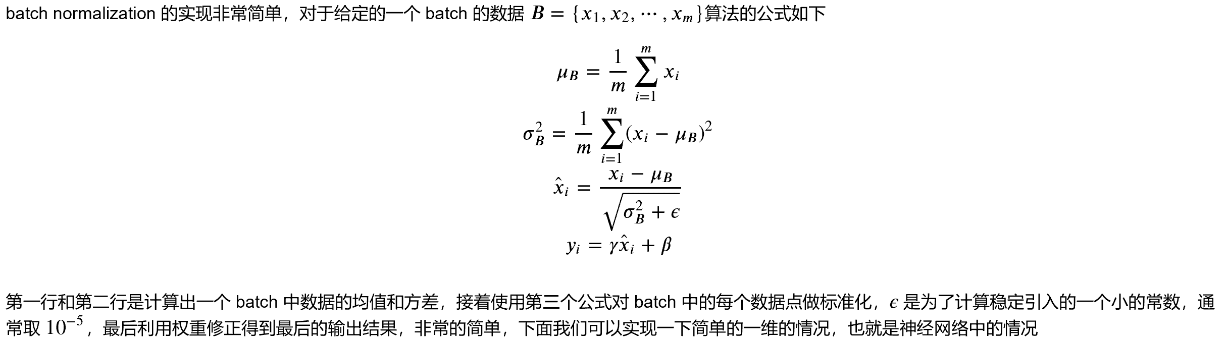 在pytorch中不用自己实现批标准化,有内置的函数实现,比如二维的BatchNorm2d()