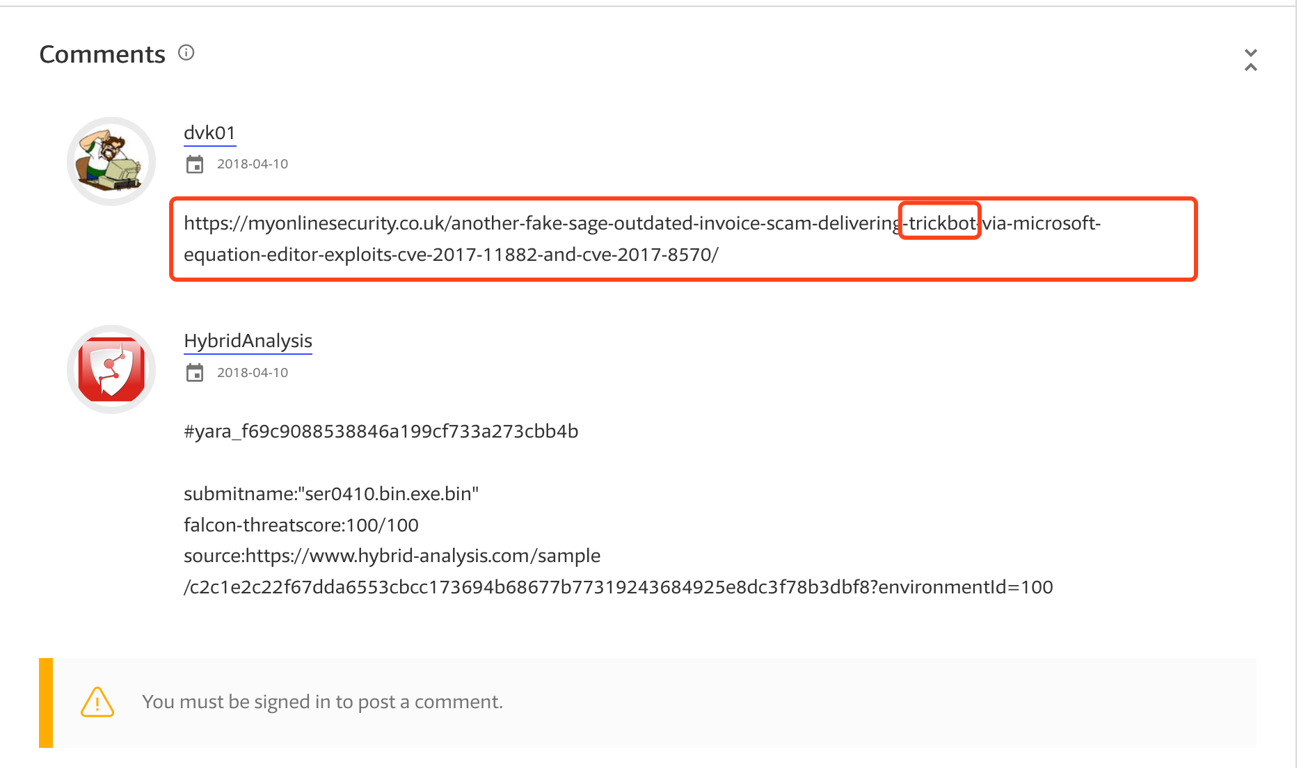 从下面的comment可以看出这可能是trickbot恶意软件