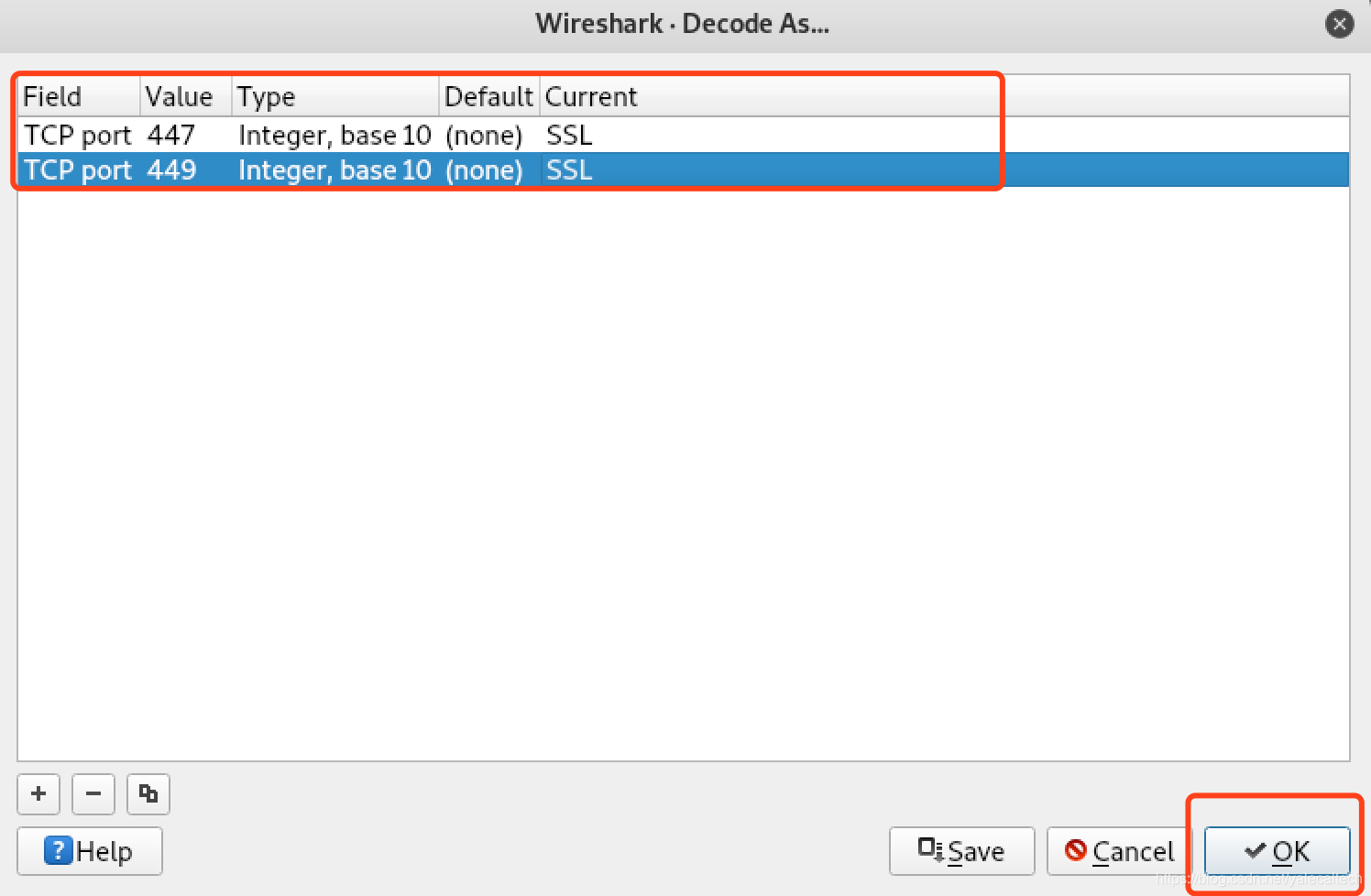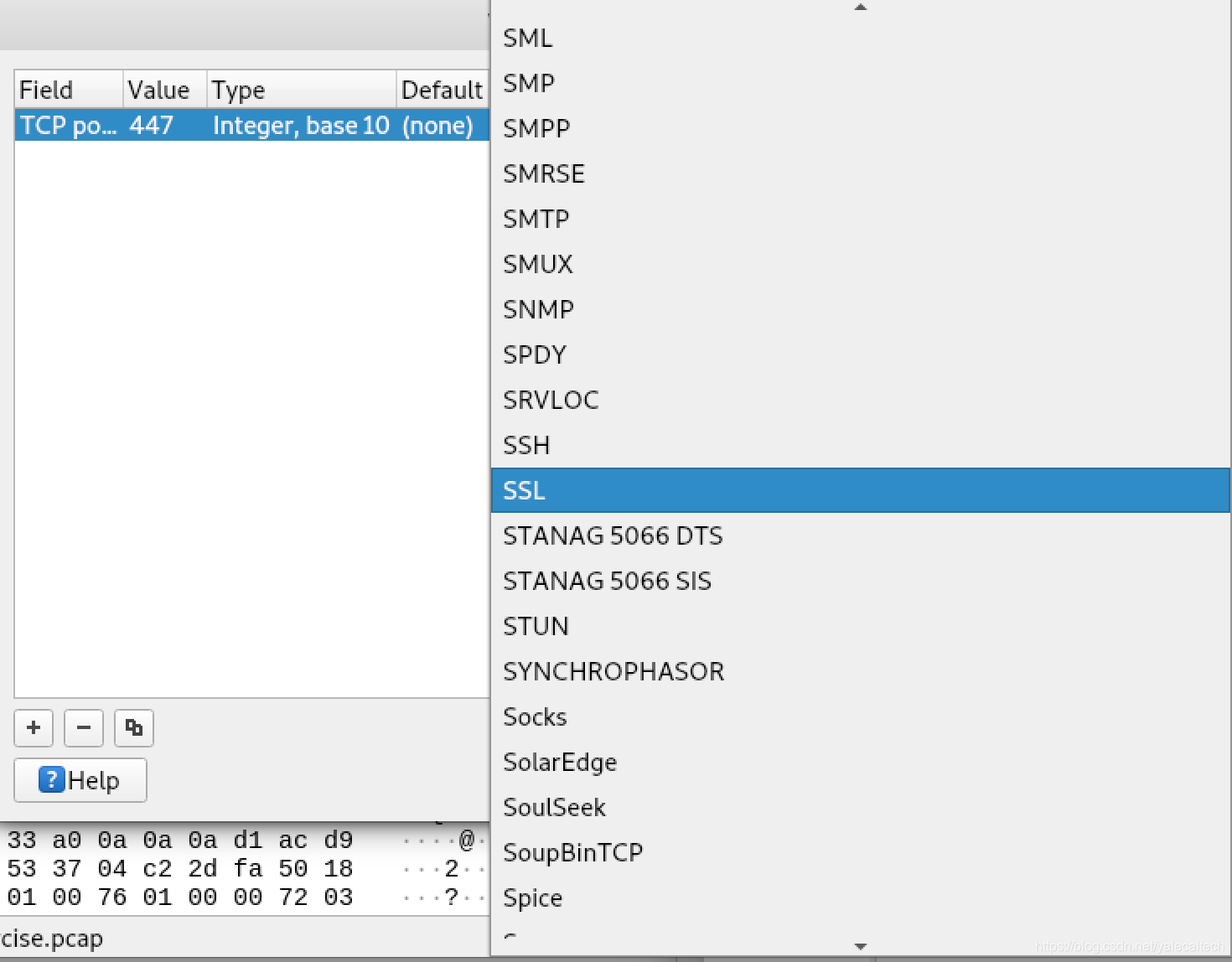第二个框起来的就是在tcp 447 449端口上的加密通讯流量,我们可以尝试将其作为ssl解密,具体步骤如下: