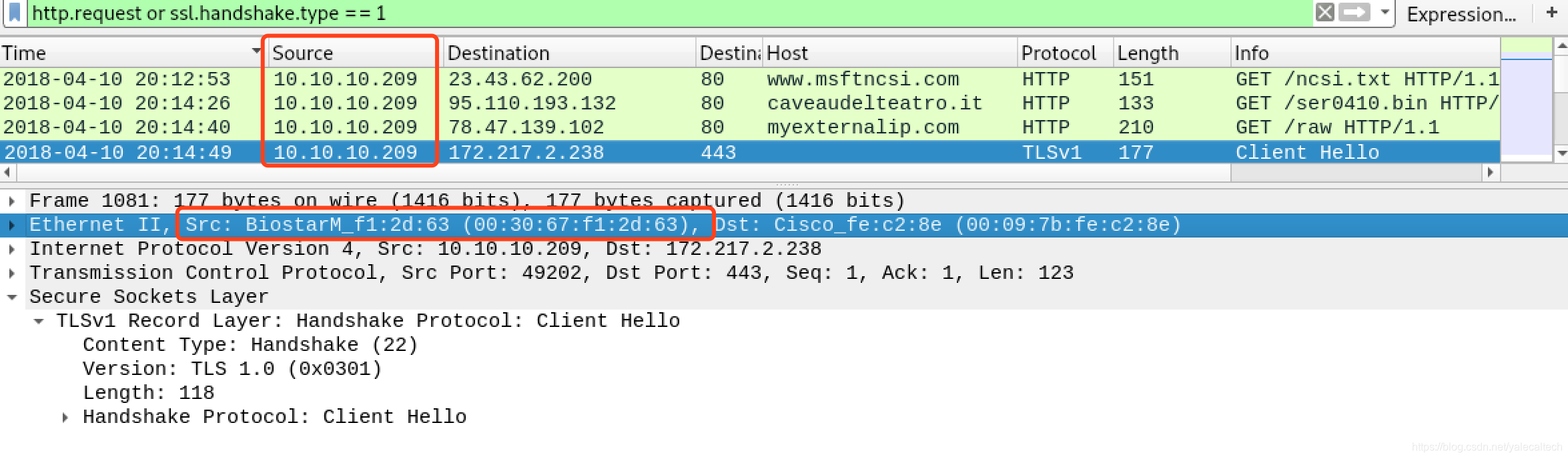 mac很容易拿到,随便选中一条10.10.10.209的流量就能看到