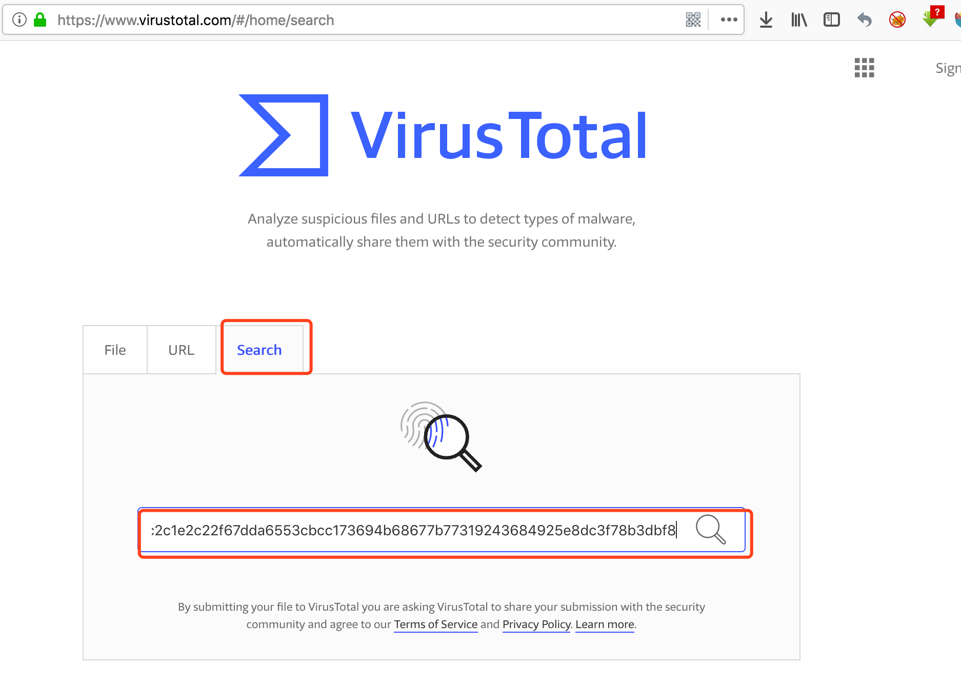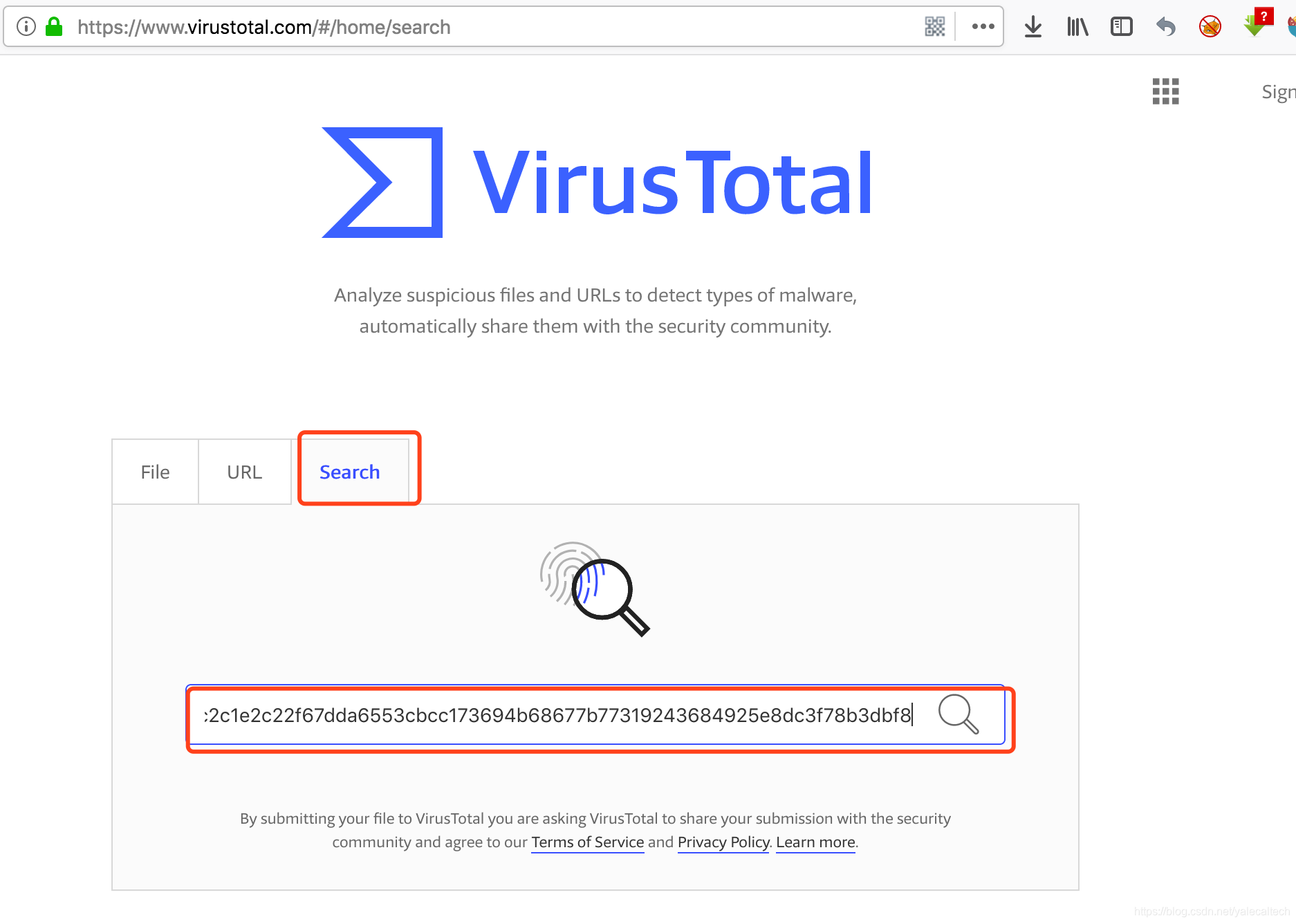 search然后在输入框中输入hash值