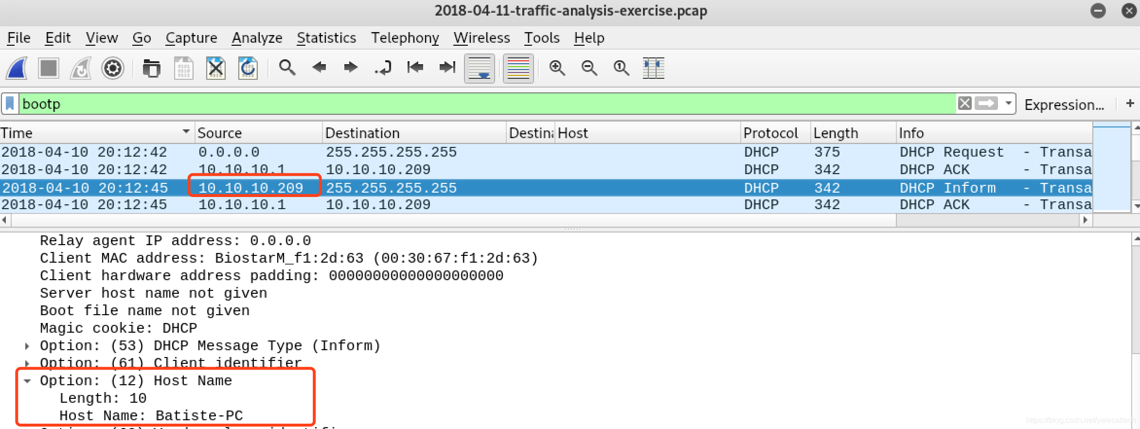 接下来要找hostname,经过前面几次流量分析训练,找hostname应该也不难了,可以使用dhcp看看