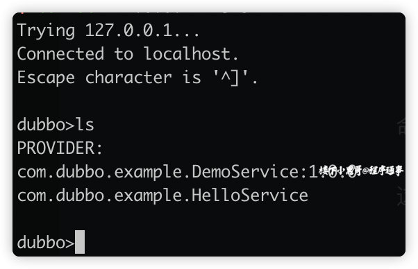 命令参考手册:http://dubbo.apache.org/zh-cn/docs/user/references/telnet.html。