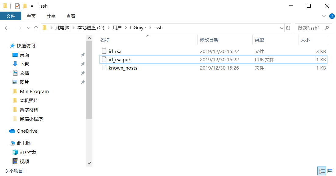 先看一下自己C盘用户目录下有没有.ssh目录,有的话看下里面有没有id_rsa和id_rsa.pub这两个文件,有就跳到下一步,没有就通过下面命令创建。