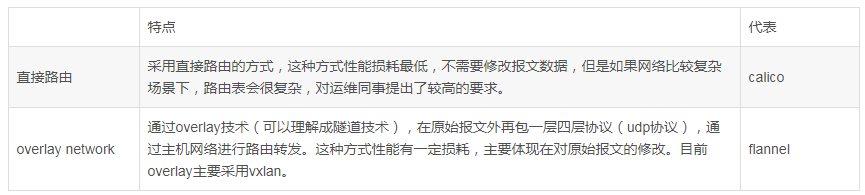 目前使用最多的解决方案有两种:直接路由和overlay network。具体差异如下: