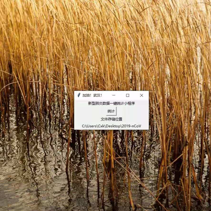 Label(root,text="新型肺炎数据一键统计小程序").pack()