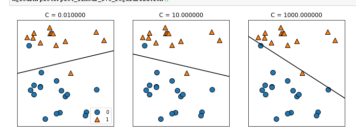 两个模型都默认使用了L2正则化,对于logistic和svm决定正则化强度的权衡参数叫C,C值越大,对应正则化越弱,训练集尽可能将训练机拟合的越好,泛性肯定也会下降;相反,同样道理。