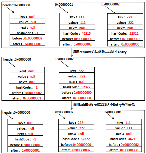 当然,这一切都是基于accessOrder=true的情况下。最后用一张图表示一下整个recordAccess的过程吧: