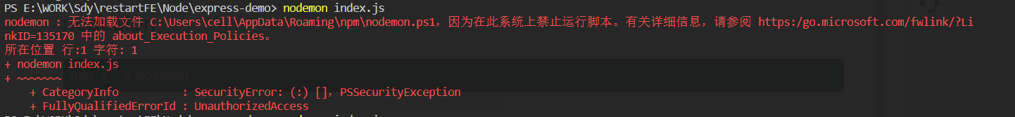 nodemon : 无法加载文件 C:\Users\cell\AppData\Roaming\npm\nodemon.ps1,因为在此系统上禁止运行脚本。有关详细信息,请参阅 https:/go.microsoft.com/fwlink/?LinkID=135170 中的 about_Execution_Policies。