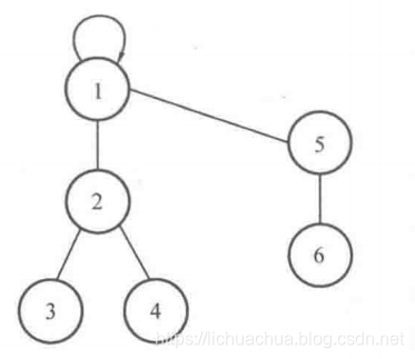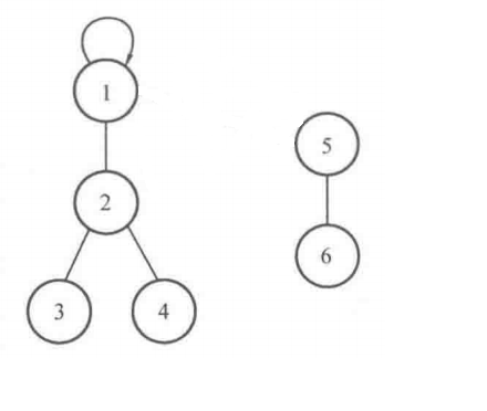 ①判断元素4和元素6是否属于同一个集合:元素4所在集合的根结点是1,元素6所在集合的根结点是5,因此它们不属于同一个集合。