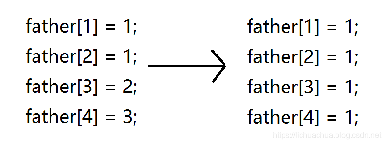 //到这里,x存放的是根结点,下面就把路径上的所有的结点father都改为根结点
