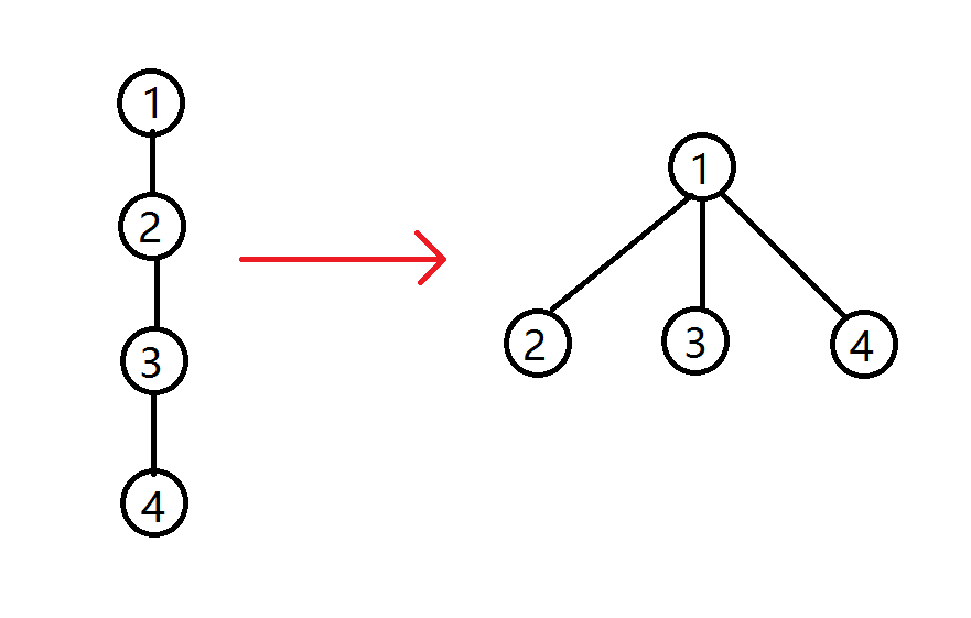 那么,如何实现这种转换呢?回忆之前查找函数finderFather的查找过程,可以知道是从给定结点不断获得其父亲结点而最终到达根结点的。因此转换的过程可以概括为如下两个步骤: