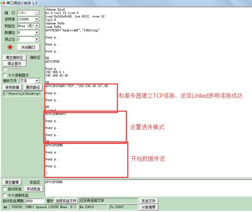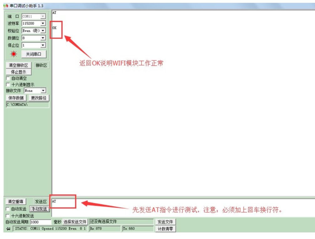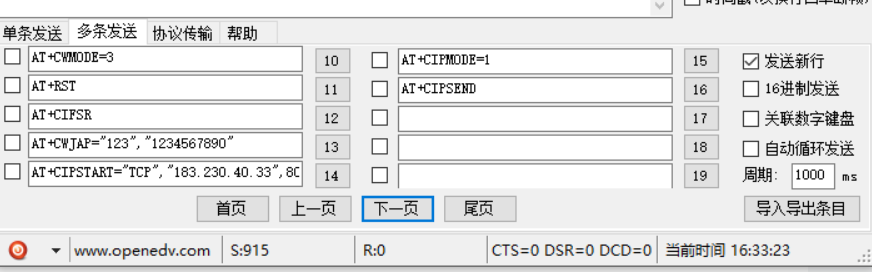 模块配置和用RestFul API接入OneNet相同,依次发送如下几个命令到WIFI模块: