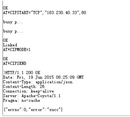AT+CIPSTART="TCP","183.230.40.33",80 //和服务器建立TCP连接