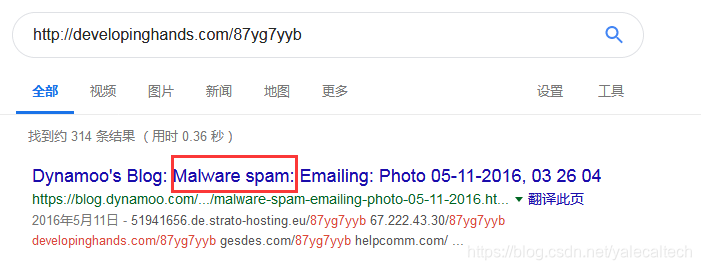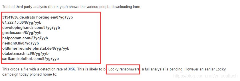 而这条链接分析博客的分析是恶意脚本下载的源链接,其模式与博客给出的其他链接相同