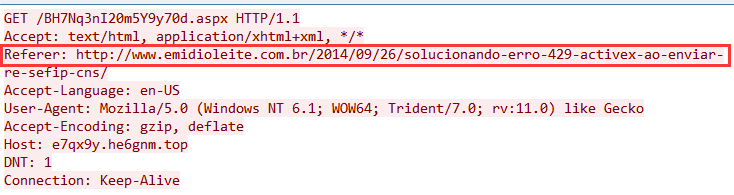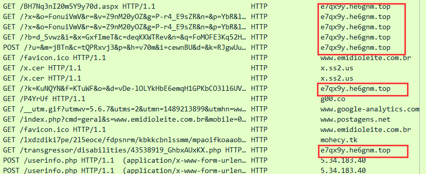 可以看到referer信息,referer表示是从该页面链接过来的,所以此处的话表明用户访问正常的网页http://www.emidioleite.com........然后被定向访问到了.top