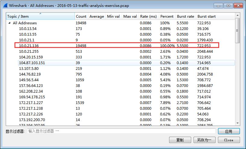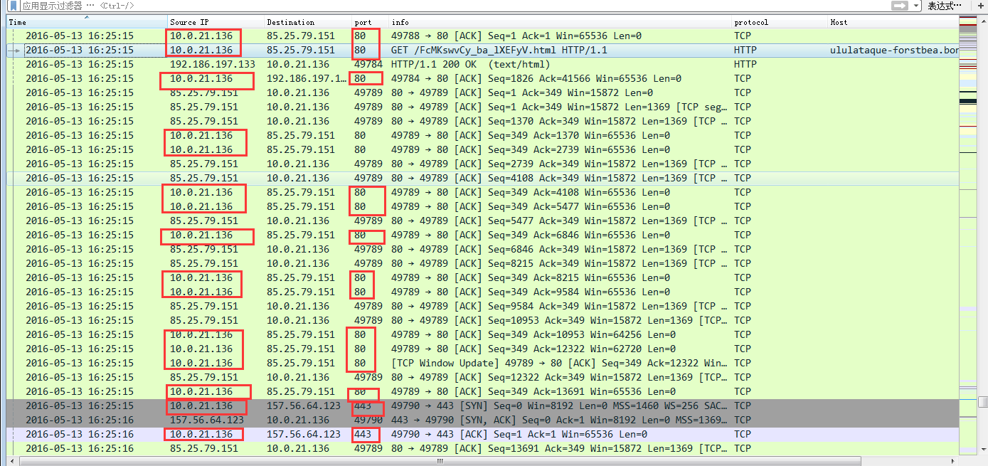 可以看到通信流量基本全部是由10.0.21.136发起的,所以用户主机的ip地址是10.0.21.136