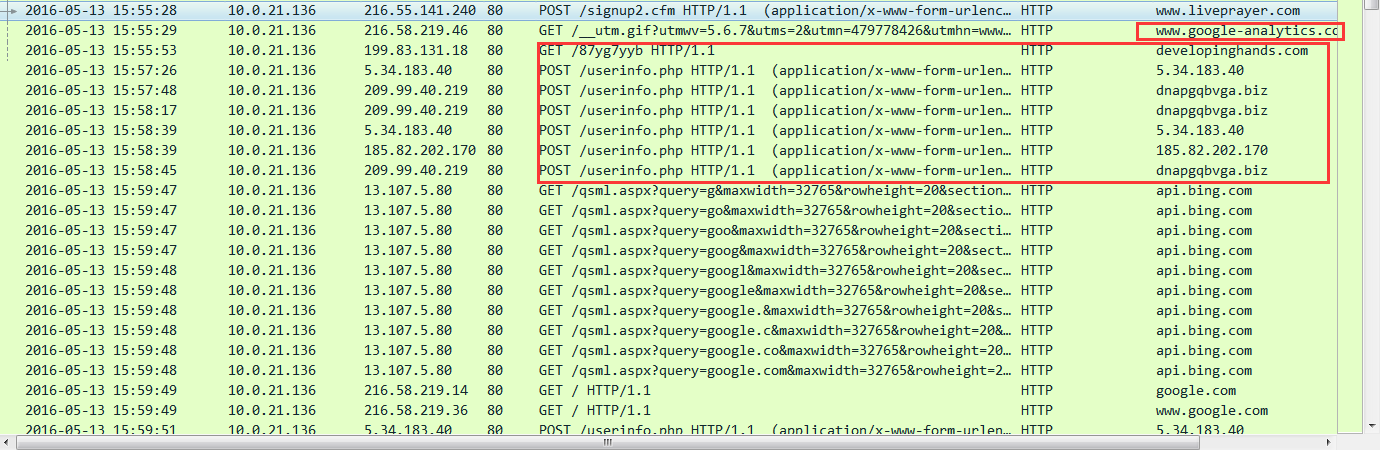 后面的post请求是用户被感染之后访问其他网页产生的流量。