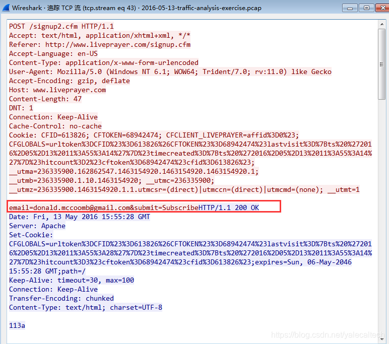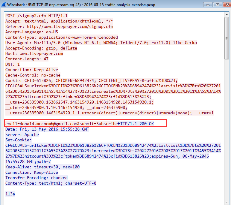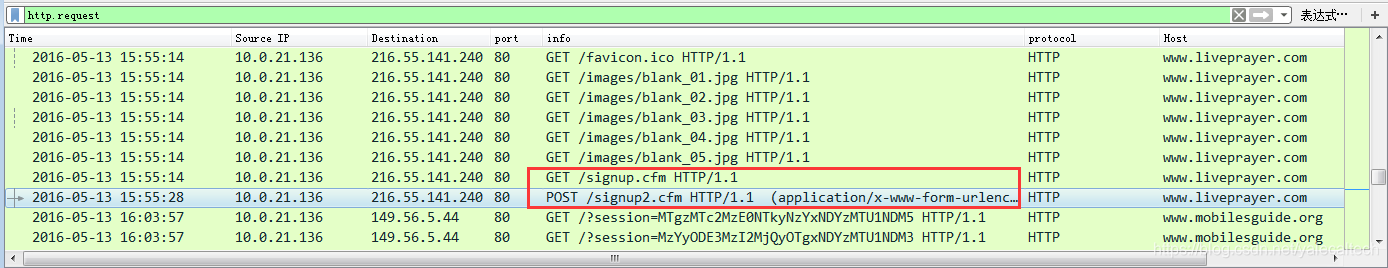 在电脑自带的通信过程中,一般人是不会设置完整的姓名的,题目既然这么问说明要从其他地方入手,比如用户在网站注册,或者他的邮件的名字,都有可能是姓名,所以我们尝试过滤出http请求数据。