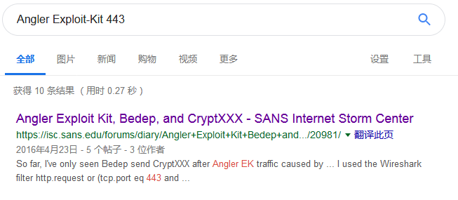 接下来结合关键字Agnler exploit-kit一起去搜索引擎搜索