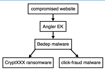 从文章的分析思路中可以看到Crypt ransomware是由Angler EK派生的