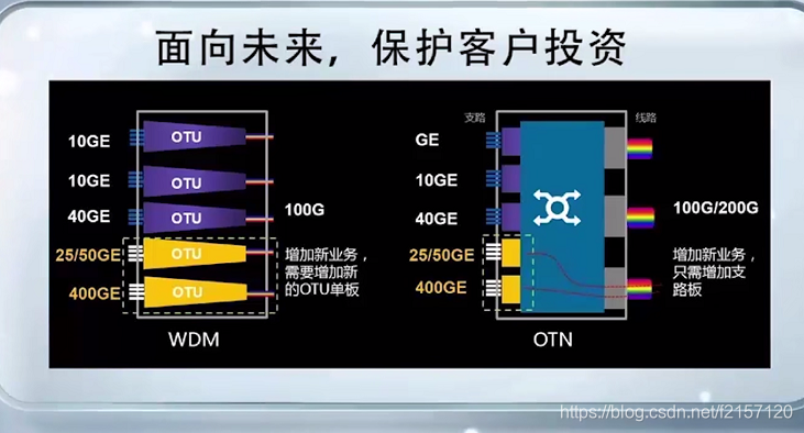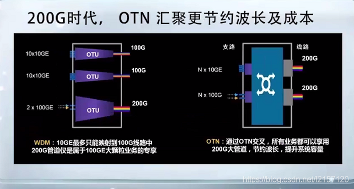 目前,200G时代,基于传统WDM还没有出现20x10G的板卡去填充客户侧的业务