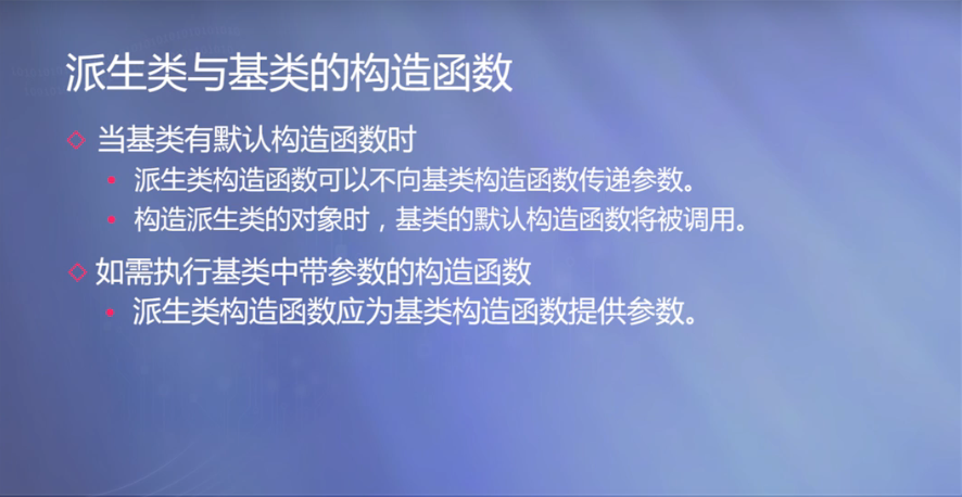 3、派生类的构造函数需要给基类的构造函数传递参数。