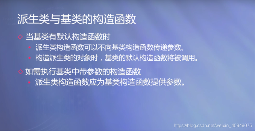 默认条件下派生类包含了全部基类中除构造和析构函数之外的所有成员,但c++11标准中规定可以用using语句继承基类构造函数。