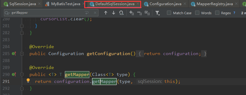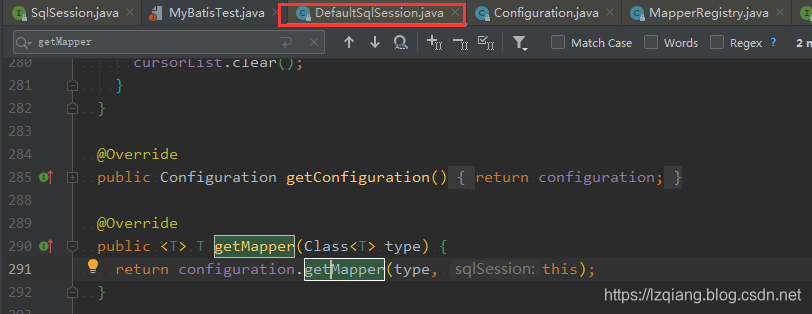 sqlSession实现类有:DefaultSqlSession , SqlSessionManager