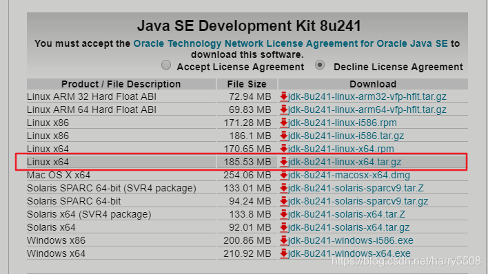 1.下载jdk的linux tar包,地址:https://www.oracle.com/technetwork/java/javase/downloads/jdk8-downloads-2133151.html