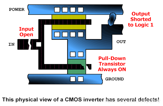 二、CMOS 工艺中常见的制造缺陷或曰物理缺陷对地和对电源的短路