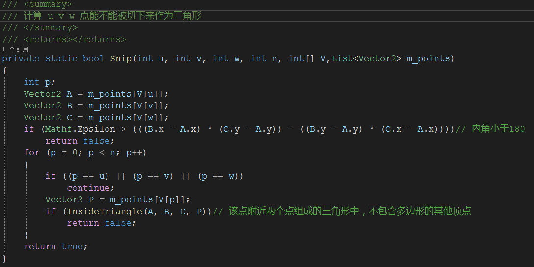 3> 怎样判断一个顶点为“耳”点?关键是线段是否都落在多边形内,并且与其他边不相交,即:该点处的内角小于180度,即该点是否包含在凸点集合C中;