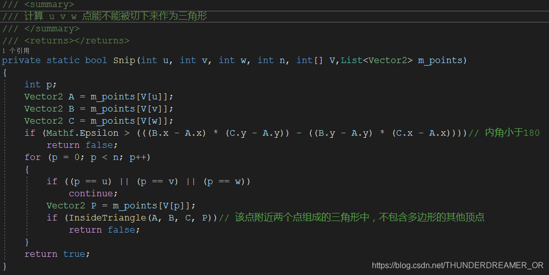 1> 怎样判断一个顶点为凸点?根据对凹顶点的定义,该点处相邻的两条边组成的多边形的内角大于180度,由此可以用向量叉乘得到: