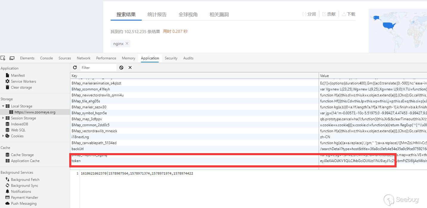 如果浏览器当前在登录状态时,则会跳转回ZoomEye并将相应的数据写到localStorage里。
