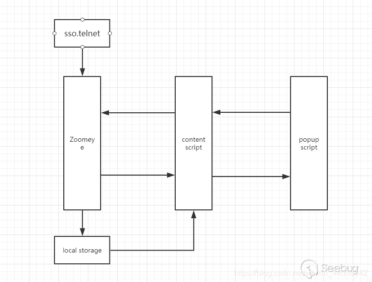由于前后端的操作分离,所有bg script需要一个明显的标志来提示需要获取浏览器前端的登录凭证,我把这个标识为定为了当tab变化时,域属于ZoomEye.org且未登录时,这时候bg script会使用chrome.tabs.executeScript来使前端完成获取localStorage并储存进chrome.storage.