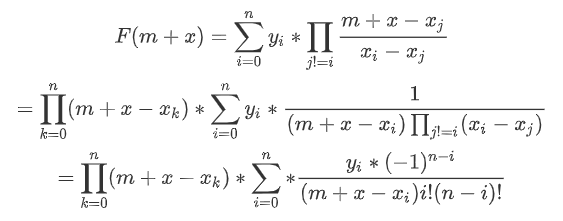 假设当前要求的这个数是m+x。首先我们肯定可以直接套用拉格朗日差值公式: